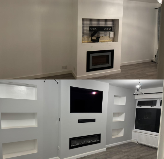 A selection of completed projects showcasing our plastering, painting and decorative finishes across residential and commercial spaces. From feature walls to full renovations, each project is completed with care, preparation and attention to detail.